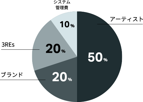 アップサイクル商品が販売成立した際の売上から、アーティストの報酬・ 3REs手数料・システム管理費を差し引いた金額をお振込みいたします。